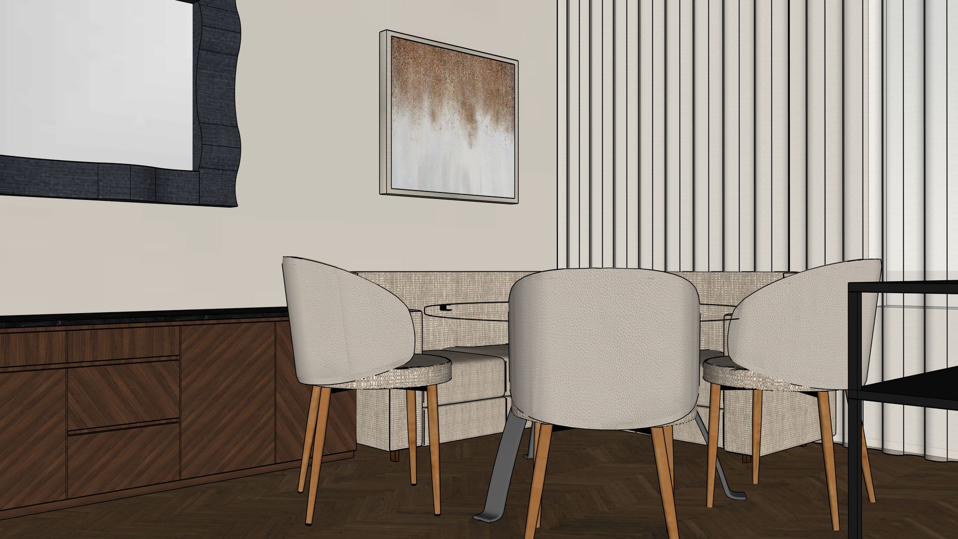 This allows the dining area to disappear visually when you want a snug, calm lounge experience without physically closing anything off.