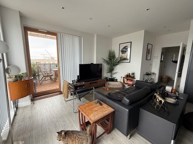 Now let’s please immediately remove that rug, those new-build vertical blinds and the clunky sideboard behind the sofa. Your intentions are good but they are killing your vibe.